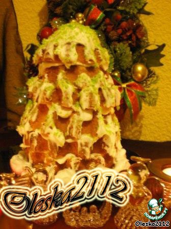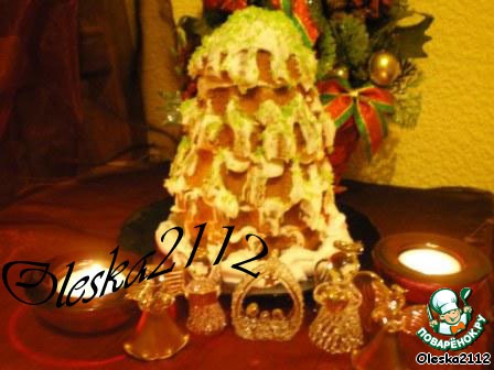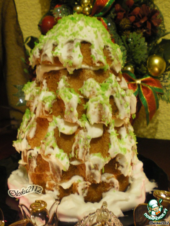 У меня получилась вот такая чудесная ёлочка. Сверху я её так же промазала взбитыми белками.