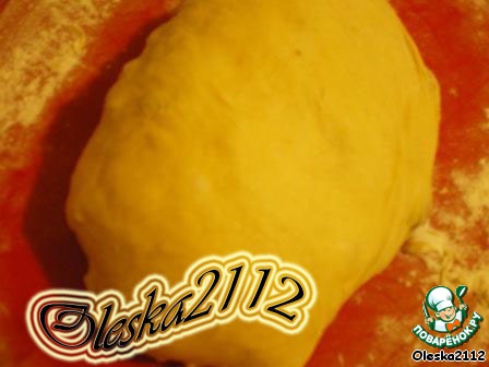 Замешиваем мягкое эластичное тесто (если необходимо по чуть-чуть добавлять тёплую воду, мне это не понадобилось). Тесто помещаем в миску, накрываем влажным полотенцем и ставим в тёплое место для "подхода". Тесто должно увеличиться приблизительно в два раза. Затем выкладываем наше тесто на стол и немножко обминаем.