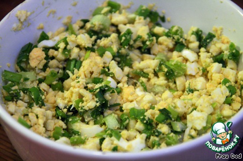 В это время готовим начинку. Яйца отварить (здесь у меня тоже +1 для мелкого, очень уж он яички любит).