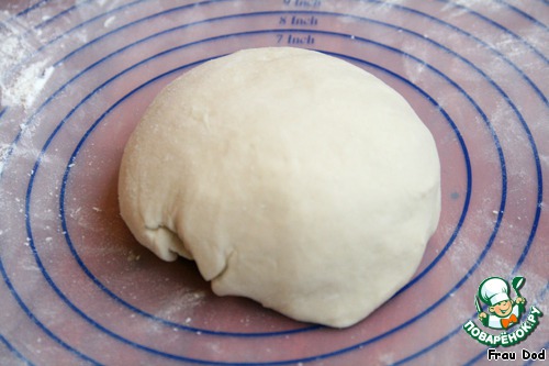 Переложить тесто на стол, вымесить 1-2 минуты. Сформировать шар и снова месить 1-2 минуты. И так не менее 5 раз - тесто не должно прилипать к не присыпанной мукой поверхности. Отбить тесто об стол, завернуть в пищевую пленку, поместить на 15 минут в теплое место.