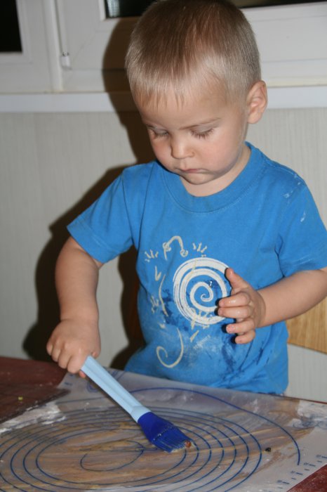 Как сказала смазывание пирожков яйцом переросло в более масштабное действие, пока мама загружала изделия в духовку