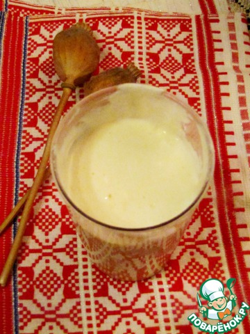 Мак заливаем молоком, добавляем немного сахара (1 ч. л.), манку и варим, пока смесь не загустеет, не забываем помешивать!