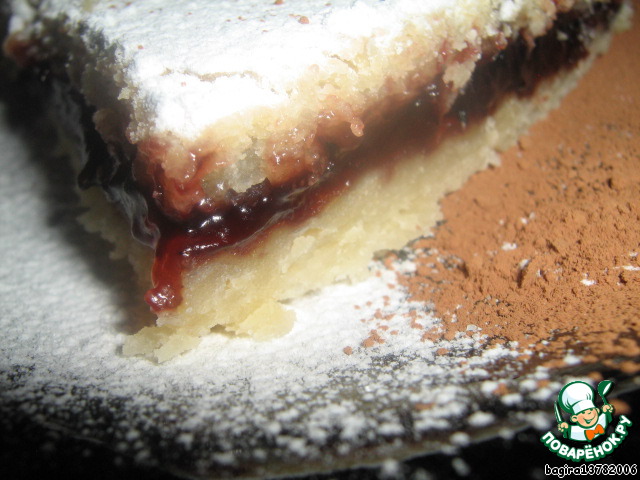 Даем остыть, посыпаем сахарной пудрой, а затем разрезаем.