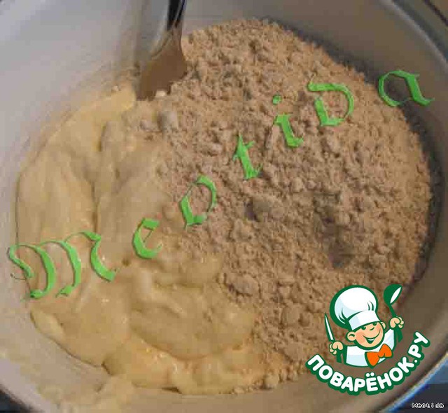 постепенно всыпаем овсяную и пшеничную муку и получаем нежное тесто