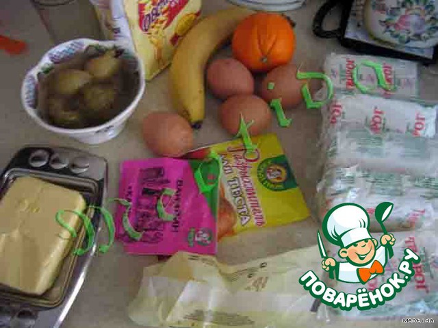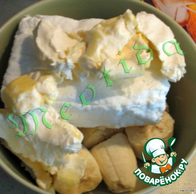 банан с творогом (200грамм) и маргарином измельчаем блендером