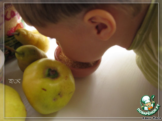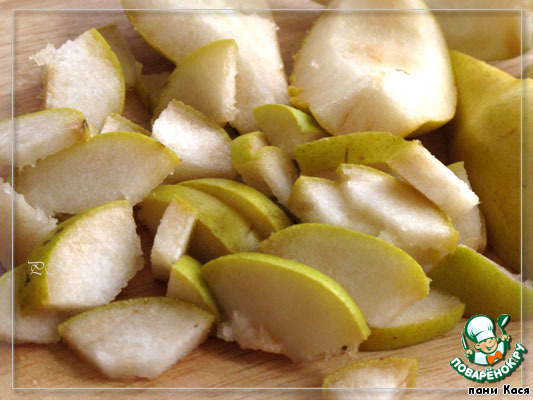 Айва готова. Нарезаем грушу, добавляем к айве и выключаем огонь. Пусть томится (на все про все 20 минут...)