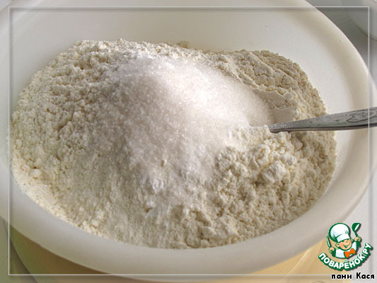 В муку вмешиваем ванильный сахар и разрыхлитель.