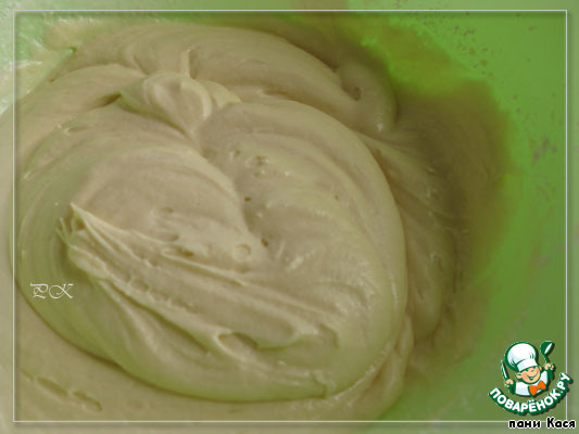 Вмешиваем мучную смесь в основную. Вот такое тесто получается - не жидкое, даже форму держит.