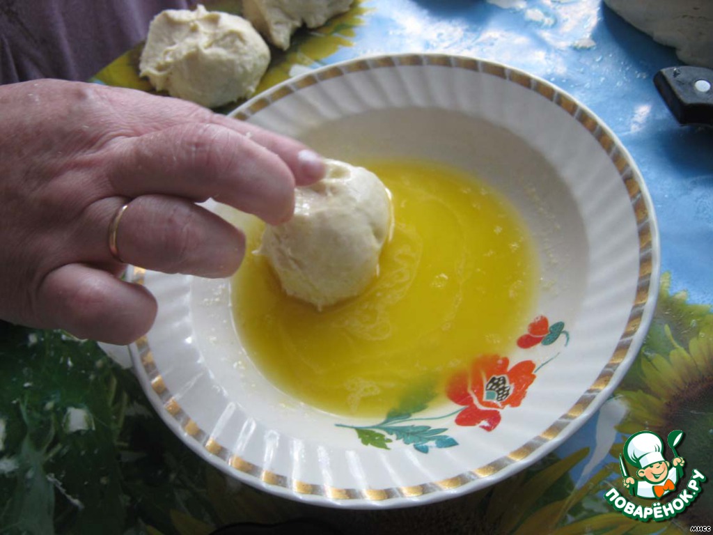 Далее обмакивала пирожок в растопленное масло.