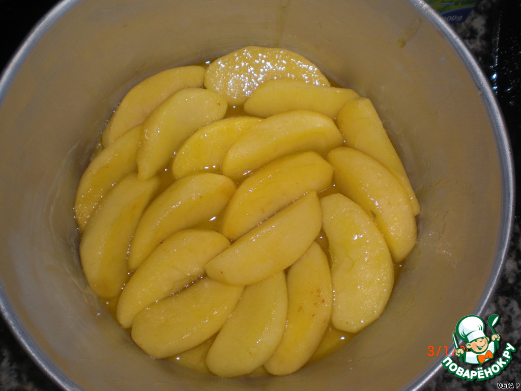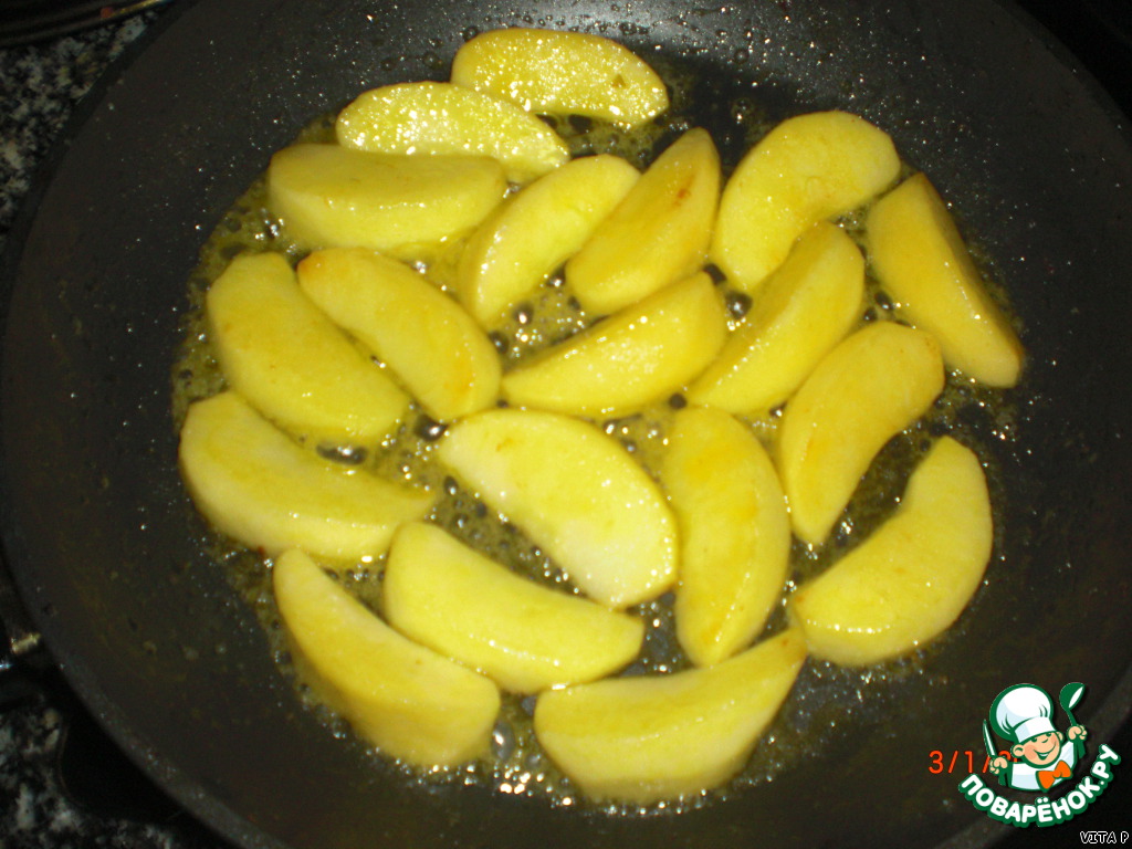 Яблоки чистим и нарезаем на куски, протушиваем на сливочном масле,