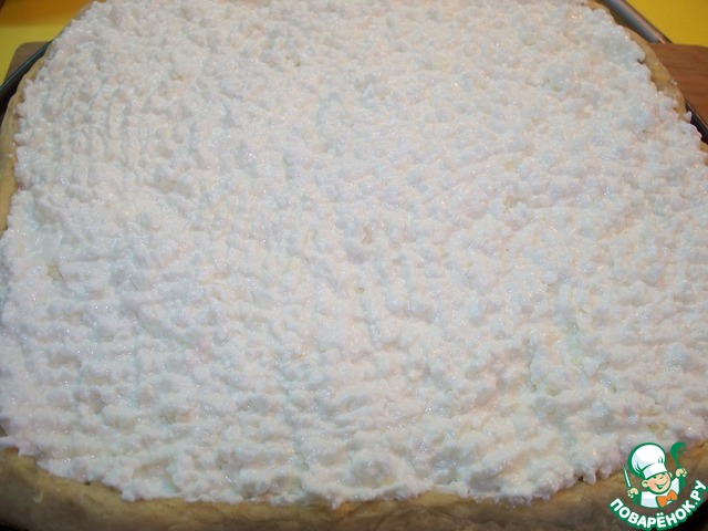 Выкладываем творожную начинку на основу, разравниваем и ставим в духовку на 10-15 минут при 180 град.