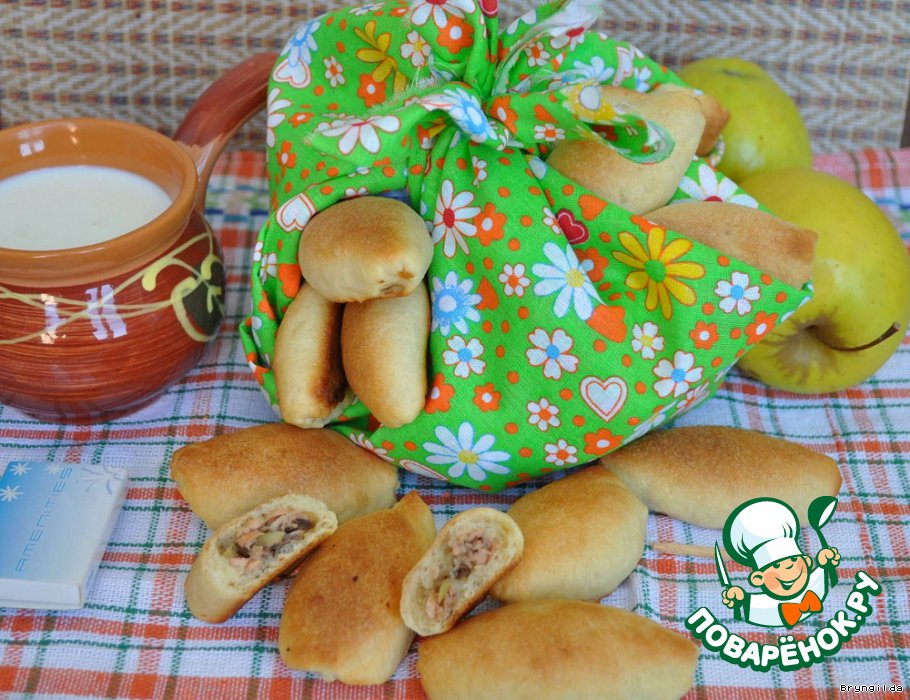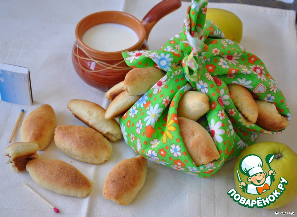 | Это крошечные, сочные и ароматные пирожки, про которые обычно говорят "на зубок" будут приятным дополнением к любому пикнику. Пирожки - крошки доставят Вам огромное удовольствие и порадуют детей! Вот такой узелок с пирожками у меня получился. Я положила рядом спичку и коробок, что бы размер пирожков был понятен. |