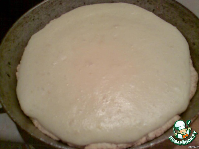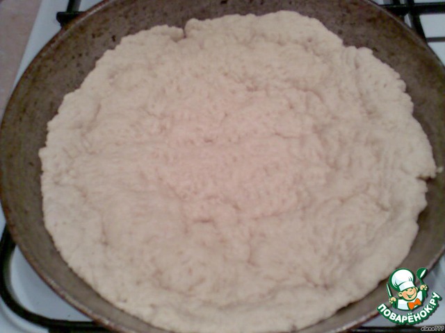 Тесто выложить в форму, слегка приподнимая края (делать лучше в съёмной форме, но у меня её нет, пришлось печь в простой), и поставить в разогретую духовку на 20-25 минут, выпекать при температуре 180-200 градусов 20-25 минут.
