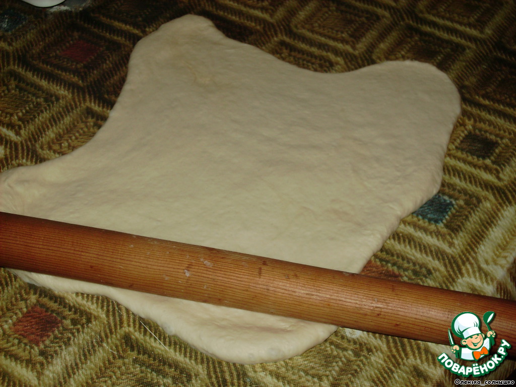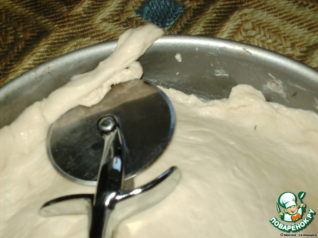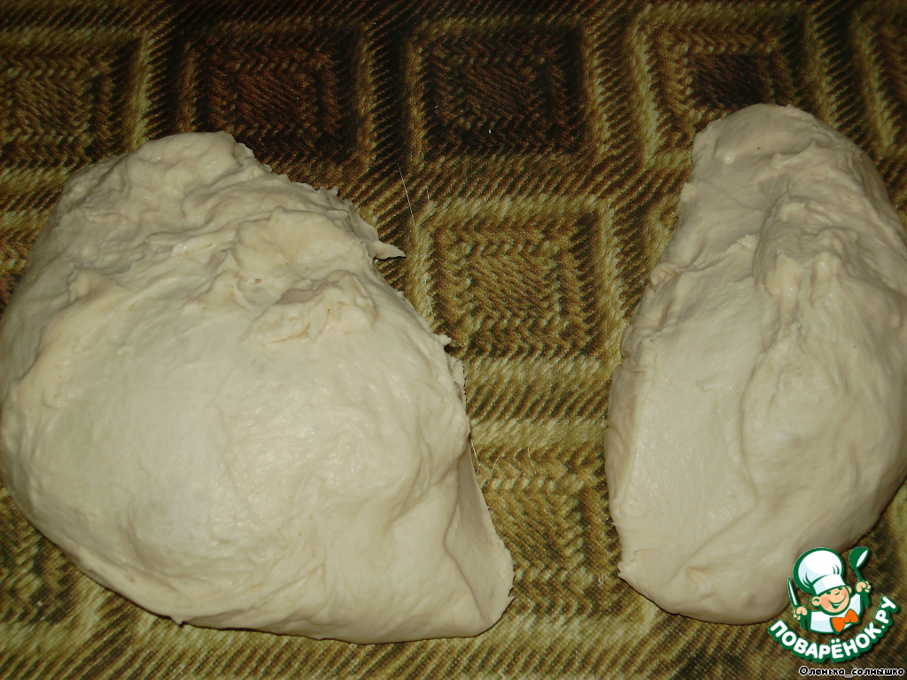 Подошедшее тесто делим на 2 части - побольше и поменьше