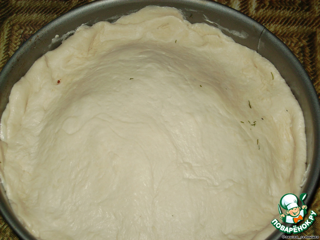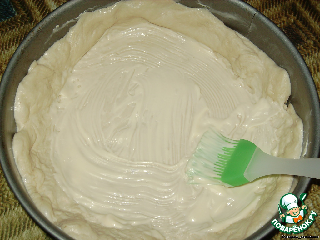 Берем форму с высокими стенками, смазываем, укладываем раскатанное тесто и формируем бортики