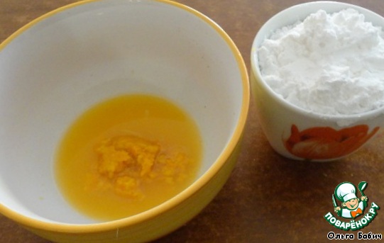 Для сиропа - смешать сок апельсина с цедрой и сахарной пудрой.