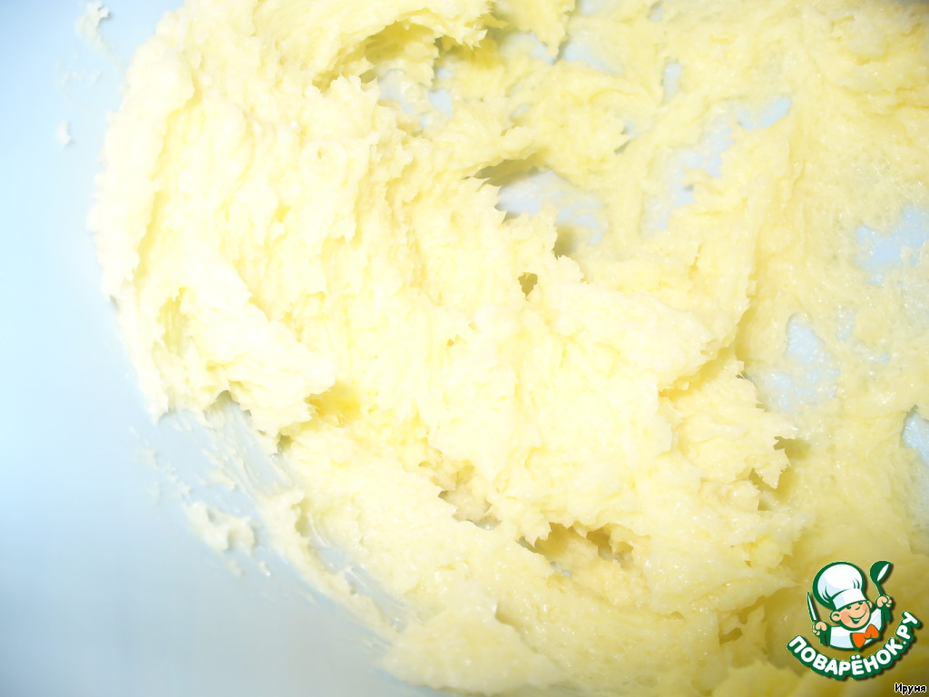 Размягченное сливочное масло положить в миску и растереть со 100 г сахара (оставшиеся 30 г - 2 ст.л. сахара пока отложить) и ванилином до консистенции крема.