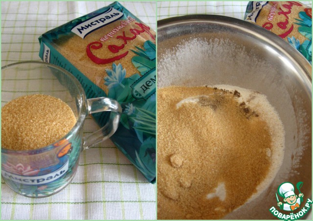 Коричневый сахар. Перемешать.
