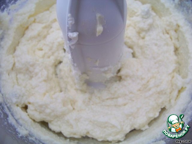 Для теста смешиваем масло (комнатной температуры), творог и сахарный песок.