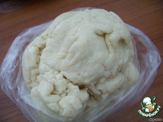 Добавляем муку, щепотку соли и соду (погасить уксусом или лимонным соком). Убираем тесто в холодильник, пока будем готовить начинку.