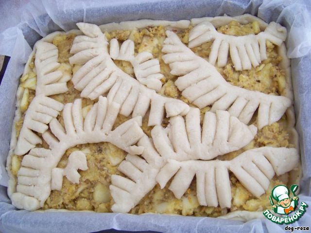 Сверху – в зависимости от возможностей и желания – выкладываем что-то вроде украшения из теста.
