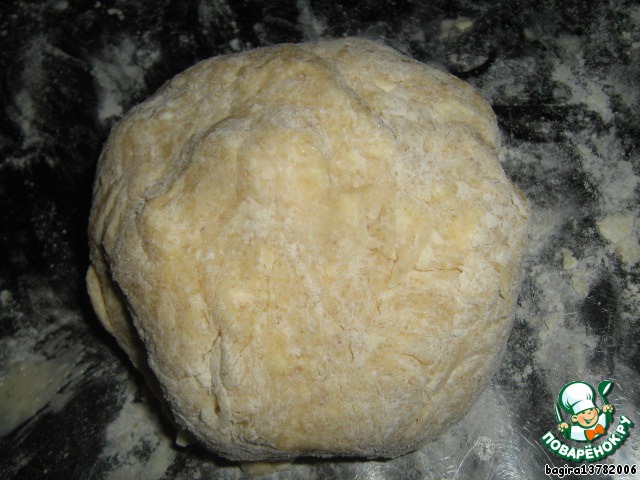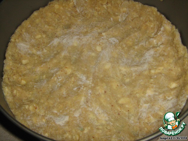 Тесто выложим в форму(23-24 см), сформируем высокие бортики и уберем в холодильник на время приготовления начинки.