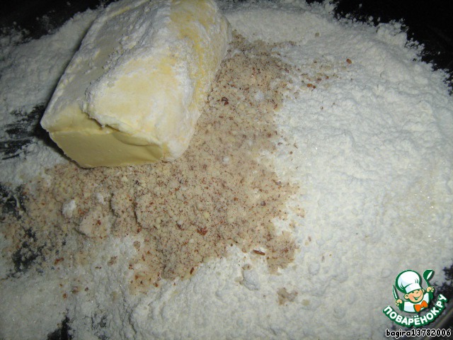 Смешаем муку, сахар (я положила вдвое больше, и не пожалела) и миндаль.