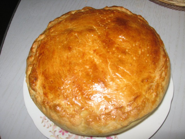 Смазать пирог взбитым яйцом и поставить в разогретую до 180С духовку примерно на 1 час