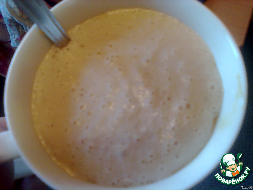 Разбавляем дрожжи в 50 мл теплой водички, хорошенько размешиваем и ждем, пока не начнет пениться... масса должна увеличиться в 2 раза.