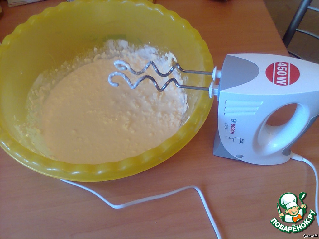 Все перемешиваем: дрожжи, яйца, маргарин, сметанку.