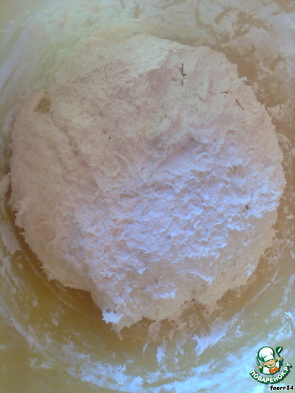 Тесто получается неказистое, липкое, но именно таким оно и должно быть, ставим его в теплое место на 1,5 - 2 часа. Я его пристраиваю возле батареи и оно у меня там быстренько доходит. Обязательно нужно добавить муку, но после того как тесто поднимется.