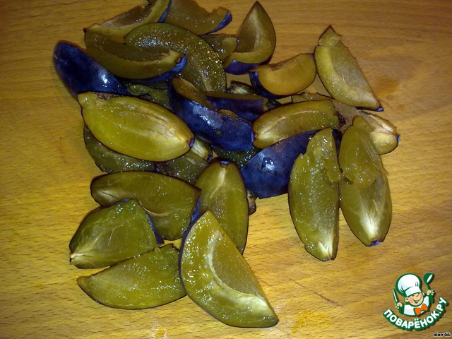 Сливы отделить от косточек и нарезать четвертушками. Можно использовать вяленые фрукты (также нарезать)