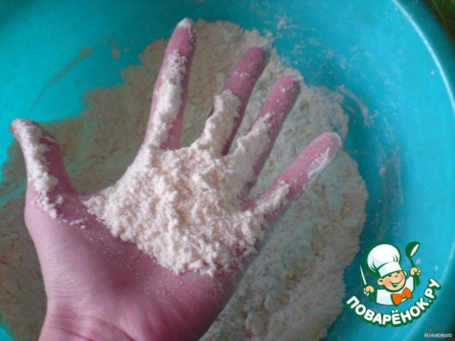 Размягченный маргарин добавляем к муке и перетираем все в крошку.