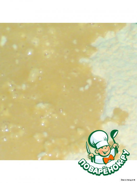 Соединяем воедино обе наши смеси: мучную и медовую.