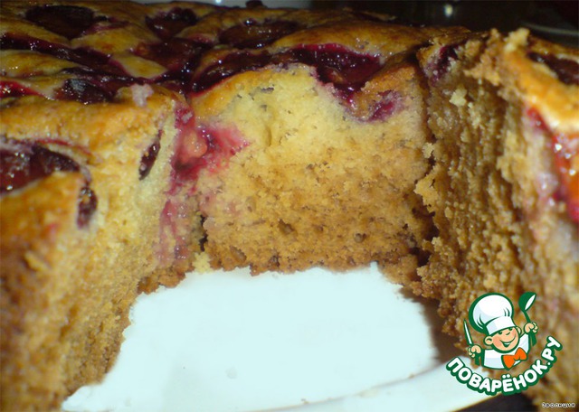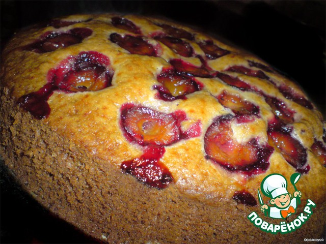 Сливы у меня были сладкими, но после выпекания стали кисленькими. Даже не знаю отчего. Несмотря на это вкус пирога получился даже интереснее. Тесто мягкое и пышное, с медовым дыханием…