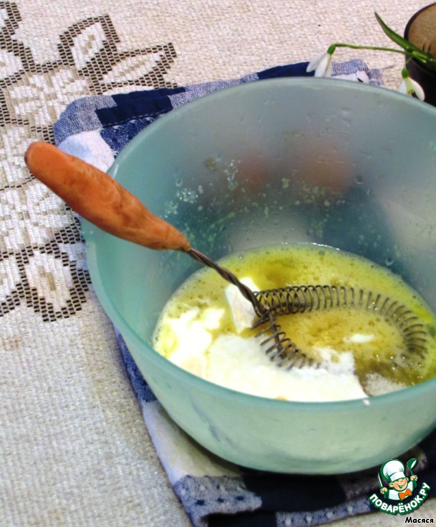 Для начинки творог растираем толкушкой для картошки (для более нежной и мягкой консистенции советую пропустить творог через сито или мясорубку).