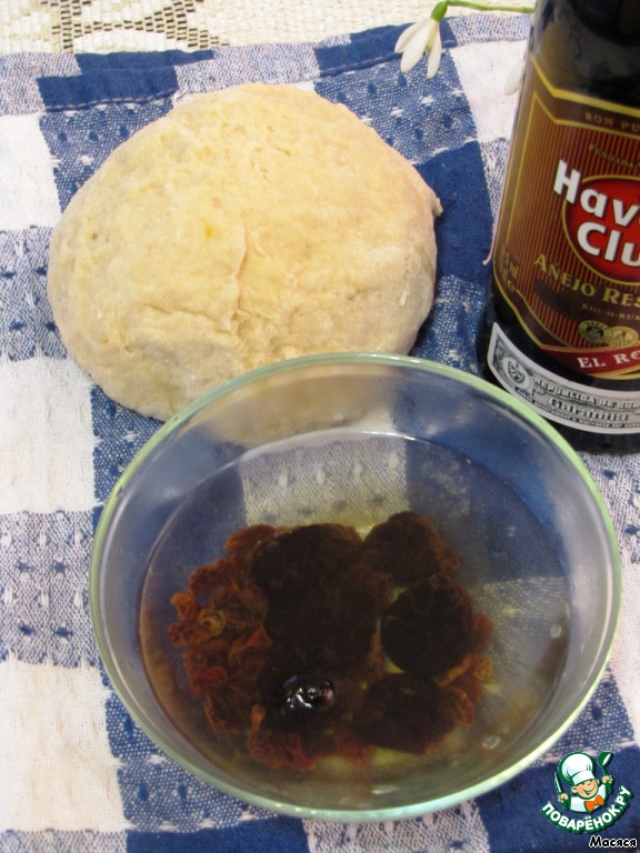 Изюм и чернослив промываем в холодной воде, затем чернослив нарезаем на небольшие кусочки и запариваем сухофрукты кипятком, добавив ром (коньяк). Оставляем на 10-15 минут.