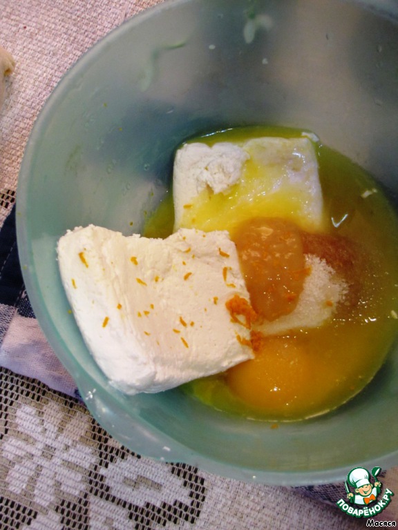 Добавляем желтки, лимонную цедру, сахар, ванилин, все хорошо взбиваем миксером до однородной массы. Если консистенция вас не очень устраивает, то можно пробить массу в блендере.