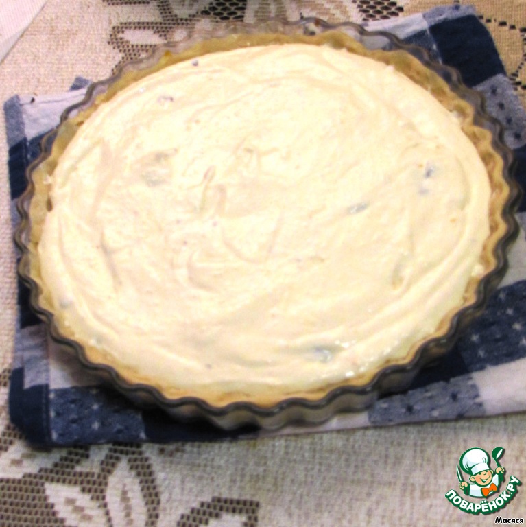 Выкладываем на тесто начинку, разравнимаем ложкой и отправляем в разогретую до 170*С духовку на 30-35 минут.