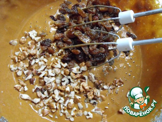 Грецкие орехи мелко порезать, изюм промыть и просушить.