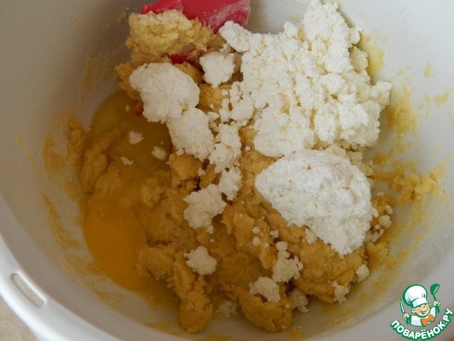 Я, вообще, заметила, что песочное тесто лучше замешивать лопаточкой, а не комбайном. Как оно замесилось в комом, так начинать его использовать. Так оно берет меньше муки и получается рыхлым и рассыпчатым.