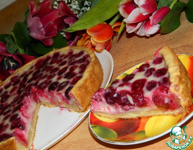 | После черно-белой зимы хочется ярких красок, а этот пирог с вишней так радует глаз. А его нежная воздушная начинка шепчет мне о том, что готовить я его буду ещё и ещё... |