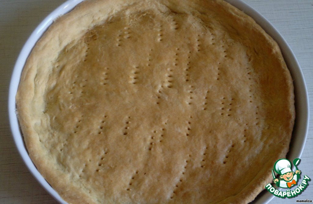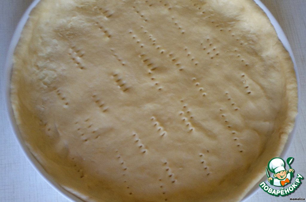Тесто раскатать в корж по величине формы и часто наколоть вилкой.