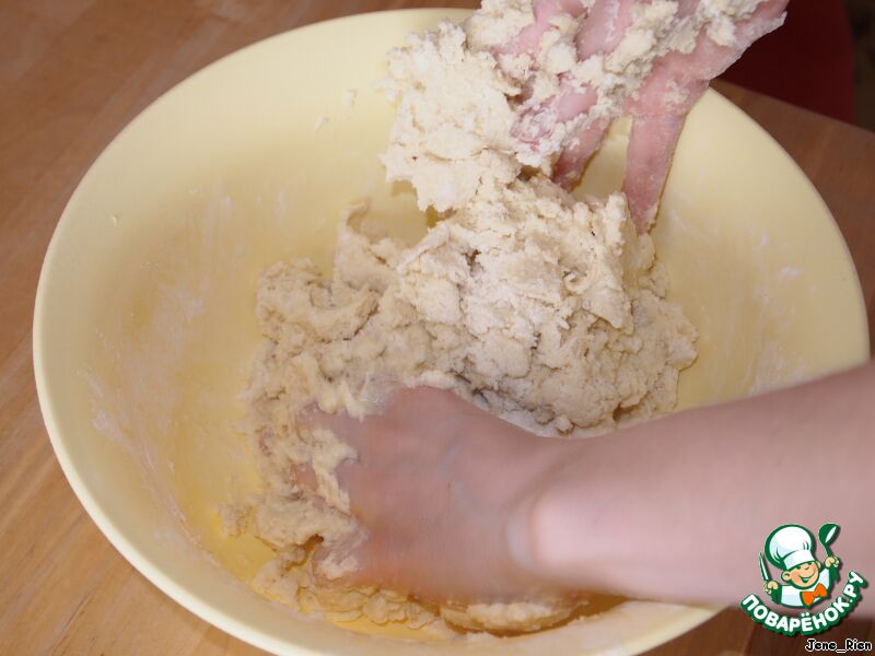 Перемешиваем руками все ингредиенты (муку лучше сразу смешать с содой),