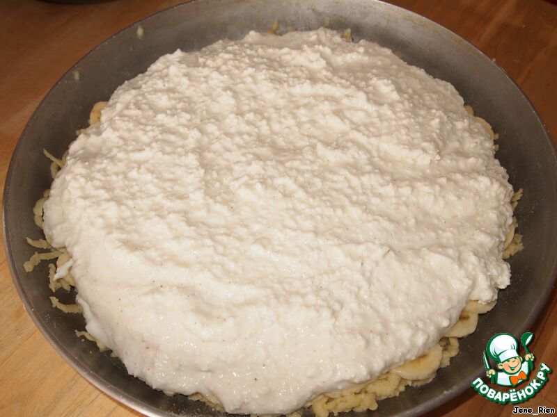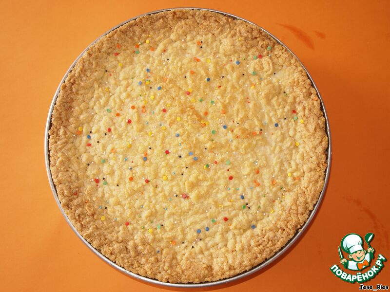 И натираем оставшуюся часть теста, равномерно распределяя по верху пирога.