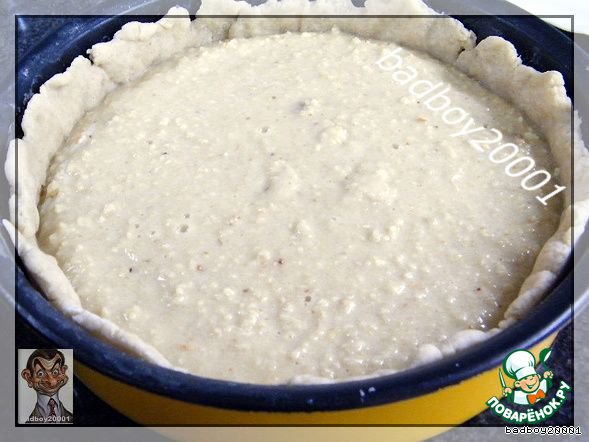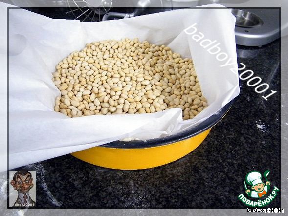обязательно накалываем, сверху кладем пергаментную бумагу, насыпаем фасоль (или другой какой-нибудь груз) и отправляем в разогретую до 180 градусов духовку на 10-15 минут.