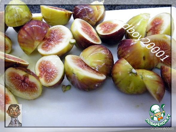 Есть немного времени заняться инжиром, его желательно помыть и порезать пополам, (маленькое отступление для тех, кто добрался до этого пункта, если на данный момент у вас нет инжира, не БЕДА, замените любой другой более-менее подходящей твердой фруктой: персики, сливы, яблоки, груши - все подходит замечательно)