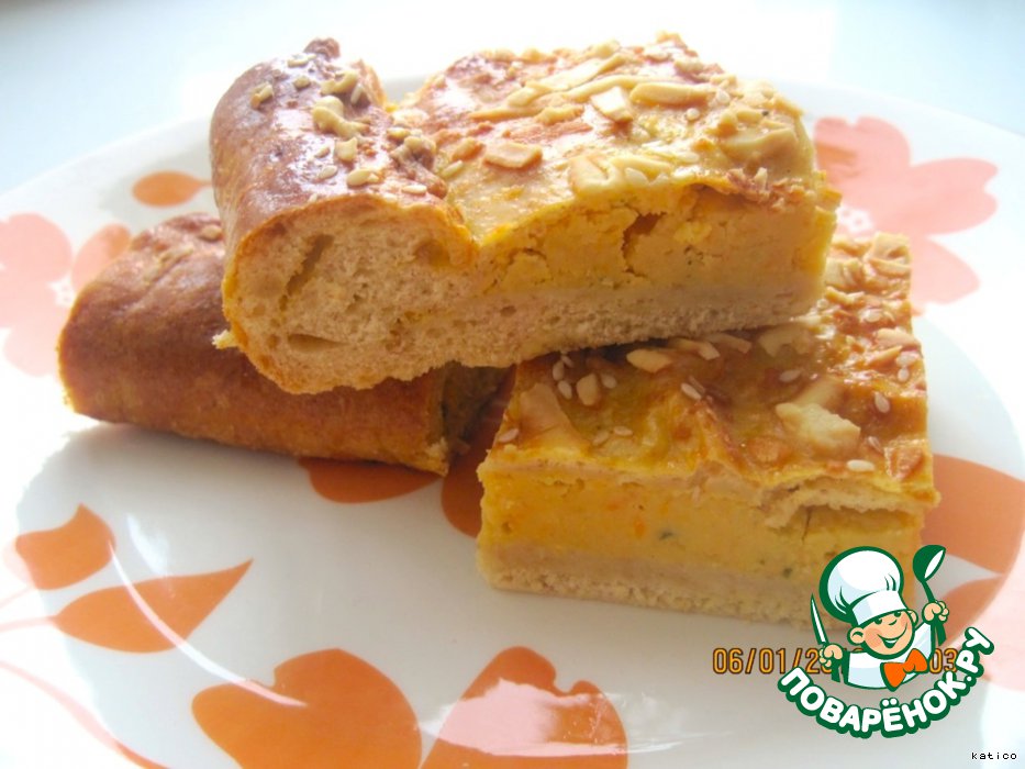 | Пирог должны оценить любители гороха. Тонкое нежное тесто, щедрая прослойка вкуснейшего горохового пюре, немного сыра и кунжута сверху. Пирог очень вкусный и ооооочень нежный!!! Долго не черствеет, хорош с супом, с бульоном и как самостоятельная закуска. Угощайтесь! |