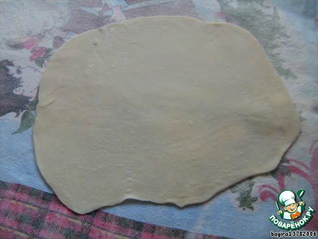 Для начала раскатаем кусочек теста скалкой, как можно тоньше.
