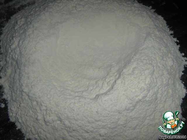 На стол в виде колодца насыпем муку. В ямку положим соль.